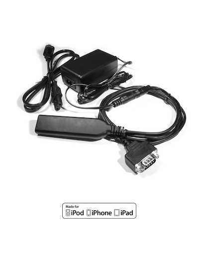 Connects a Lightning iPhone, iPad or iPod touch to an RS-232 serial device and power.